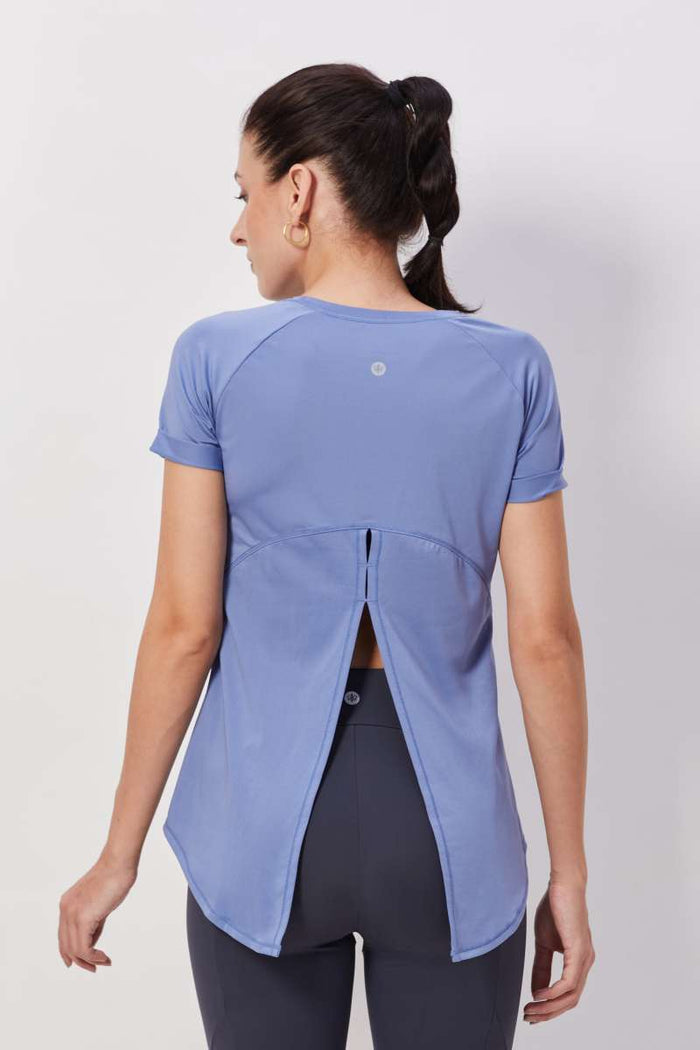 Half-sleeves Peek-a-Boo Workout Top - Blue
