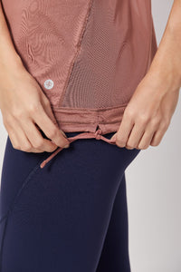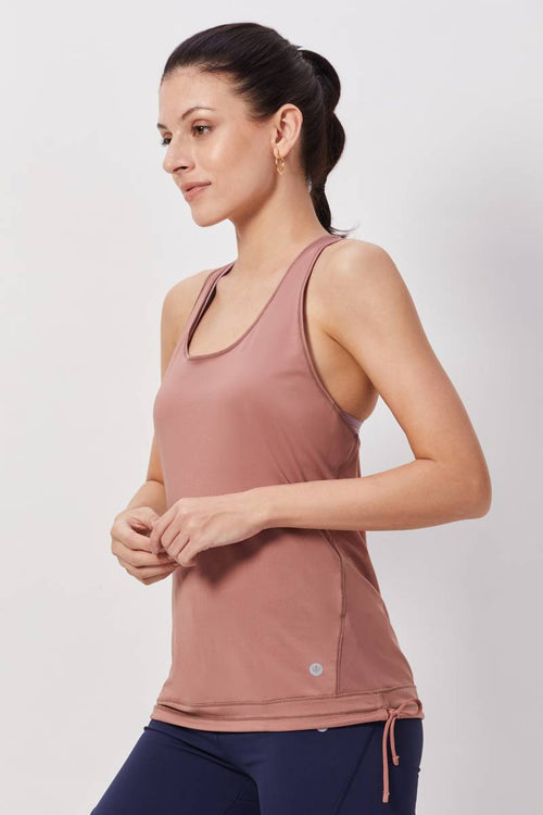 Thin straps allow maximum range of motion and ease of movement. Drawcord at waist helps you customise your fit. Sheer mesh back adds a touch of breathable style.