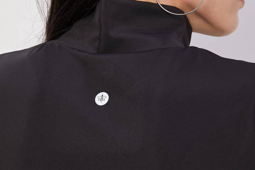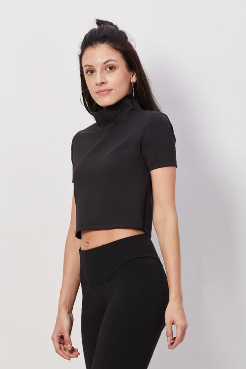 This high mock neck top is the definition of athluxury. The cropped length pairs well with high waisted tights.