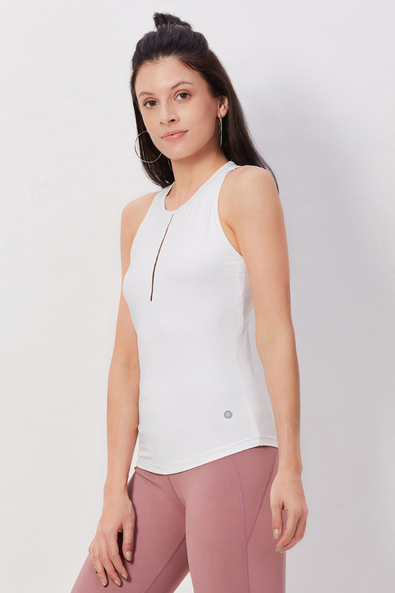 A tank top like no other, the fish bone trim adds a touch of chic and the in-cut sleeves enable a complete range of motion.